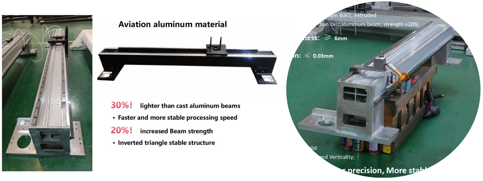 Featuring a unique honeycomb-shaped patented design, this beam offers a large cross-section, lightweight construction, high strength, excellent precision, and dynamic responsiveness. It is suitable for high-speed, high-response, and high-performance laser cutting.
